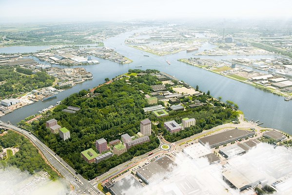 Vogelperspectief stedenbouwkundig plan noordelijk deel Hembrugterrein.