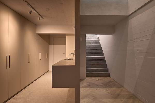 , is zo ontworpen dat de ruimte voor verschillende functies bruikbaar is, legt Kumiki uit. Zo kan het souterrain met pantry ook fungeren als kantoor aan huis, een bed & breakfast of een gastenverblijf voor vrienden. “Alle faciliteiten zijn ervoor aanwezig”, aldus Kumiki. “Dat maakt de GarageLoft zeer toekomstbestendig.”