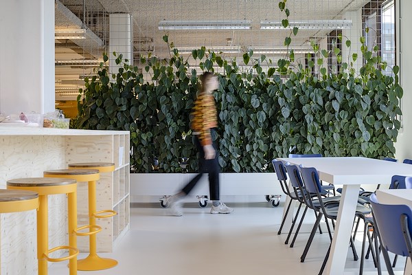 De flexibele indeelbaarheid van het kantoor bood tevens de mogelijkheid om 25 vierkante meter aan beplanting te realiseren. De planten zijn ondergebracht in door Felixx ontworpen kweektafels, die de scheidingen vormen tussen de werkplekken. Ze zorgen niet alleen voor een groene sfeer, maar dragen ook bij aan een gezonde en productieve werkomgeving, benadrukt Felixx.