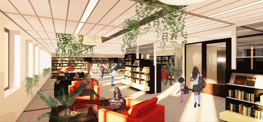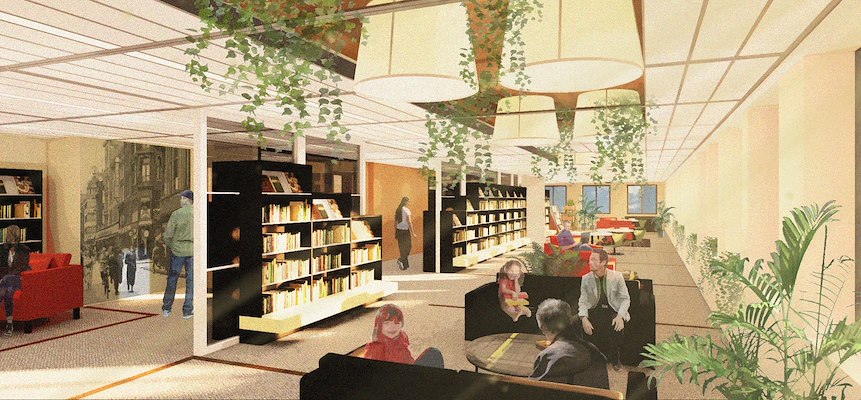 Uitgangspunt voor het ontwerp is het idee van de bibliotheek als aantrekkelijke huiskamer van de stad. Het gebouw blijft zijn markante uiterlijk behouden, maar wordt aan de binnenzijde lichter en geschikter gemaakt om ontmoetingen te faciliteren. Aan alle zijden van de bibliotheek komen ingangen en in de kelder komt een fietsenstalling met ruimte voor 1.500 fietsen.
