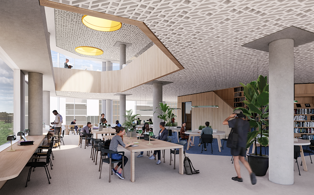 Bij de vernieuwing van de bibliotheek wordt de bestaande betonconstructie hergebruikt. Om de energieprestaties van het gebouw te verbeteren wordt het klimaatsysteem volledig vernieuwd en de gevels goed geïsoleerd. De karakteristieke dakterrassen van het gebouw worden vergroot, deels om meer publieke ruimte te creëren, maar vooral om de terrassen te vergroenen.