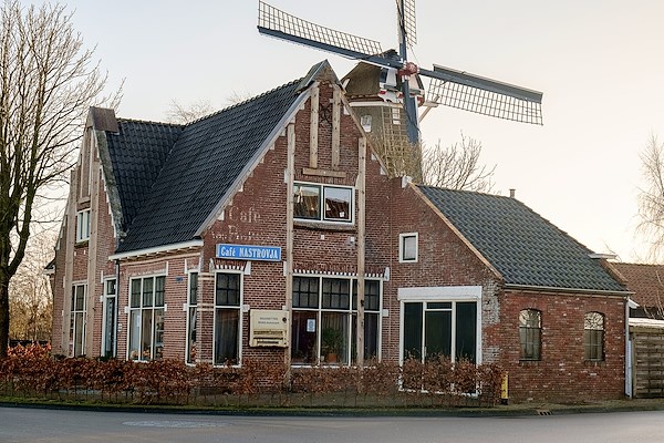 Café Nastrovje in Zeerijp, versterkt met balken vanwege scheuren door de aardbevingen in het gebied