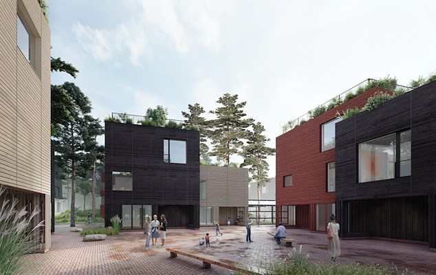 In Amersfoort is afgelopen donderdag 29 juni officieel de bouw gestart van de wijk Common Woods. De woningen worden modulair en met oog voor circulariteit gebouwd, grotendeels uit CLT. Architect van de woningen is Space&Matter; Delva Landscape Architecture & Urbanism ontwerpt het landschap.