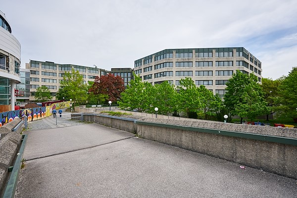 Fritz 5 maakt een sterke verbinding met het ‘cultuurhof’ doordat de entree is gecombineerd met een tribune. Hier kunnen bewoners en bezoekers kijken naar optredens in het hof. Kenmerkend voor het pand zijn de gekartelde gevel met groene kozijnen en het getrapte dak, dat met verschillende terrassen zicht biedt op de nabijgelegen Alpen. Het gebouw, gesitueerd tussen hogere volumes, kent hoofdzakelijk een kantoorprogramma.