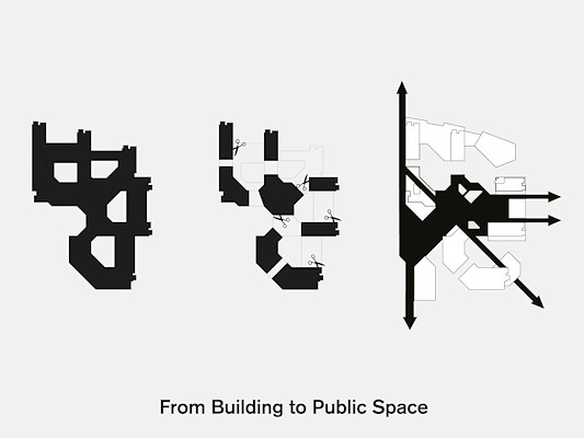 Aan dit ensemble voegen de architecten twee nieuwe gebouwen toe. Het resultaat is een gevarieerde compositie van negen individuele gebouwen, pleinen, steegjes, hoven, parkjes en (dak)terrassen. De ontstane diversiteit en veelvormigheid maakt een uiteenlopend programma mogelijk, aldus Site Practice + ZUS.