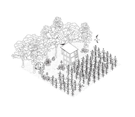 Het bouwwerk kadert het uitzicht op enerzijds het akkerlandschap en anderzijds het natuurlandschap. Daarmee willen de ontwerpers bij de bezoeker vragen oproepen over hoe deze twee landschappen samengaan en wat de toekomst is van ons gecultiveerde landschap, of het nu landbouwgrond of natuur betreft.