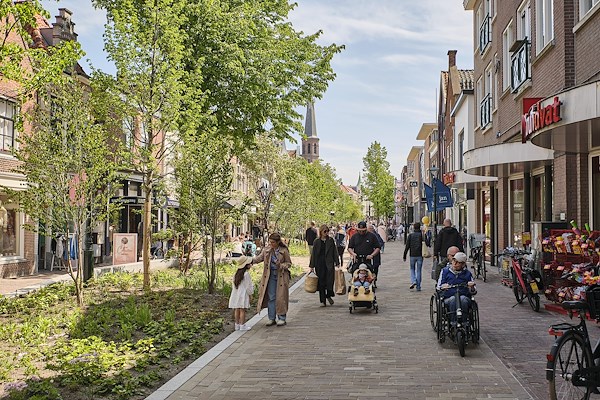 is de tweede winkelstraat van de Kaasstad heringericht met veel groen, nieuwe verblijfsplekken en (deels) andere bestrating. Op die manier moet de Laat aantrekkelijker en klimaatbestendiger worden.