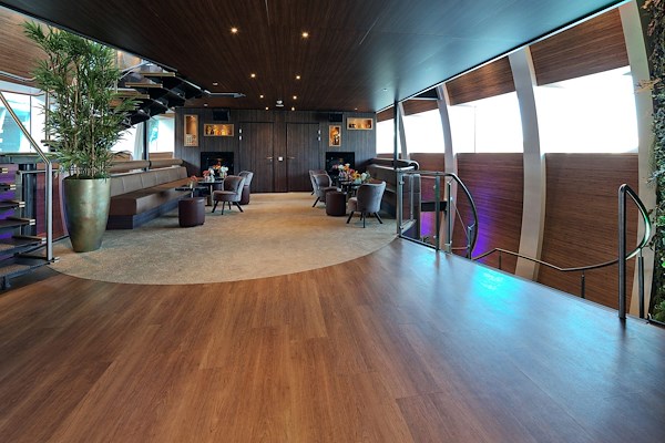 Het RiverEvent vindt plaats op een nieuw schip, de Blue Rhapsody, waar leveranciers zich op twee open vloeren presenteren met compacte stands. “Het is een prachtige setting, waarin je makkelijk met elkaar in gesprek treedt, en waarbij wij voor een hoogwaardige catering zorgen”, vertelt Scheepers.