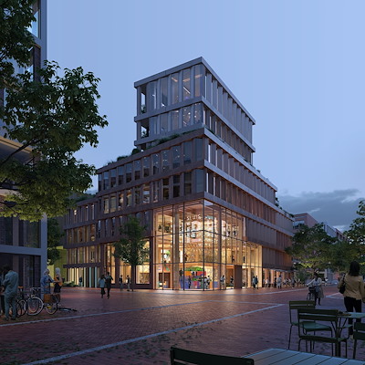 heeft de tender voor een werkgebouw in de Amsterdamse Sluisbuurt gewonnen. Het gebouw, dat plaats biedt aan kantoren voor verschillende bedrijven, horeca en detailhandel, krijgt een houten constructie. Op de hoek is de drie verdiepingen tellende plint geheel open, zodat vanaf de straat zicht wordt geboden op het entreegebied met een trappartij die tevens een ontmoetingsfunctie heeft.