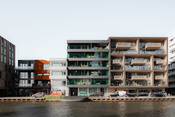 Woongebouw langs Tolhuiskanaal ontworpen als gekantelde loods