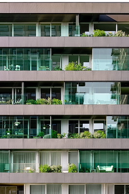Kleinschalig woongebouw met een gevel van buitenkamers en tuinen