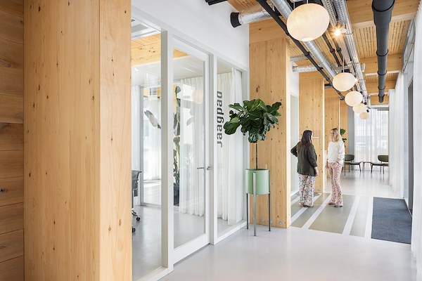 De houten hoofdstructuur resulteert in een open ruimte, die flexibel kan worden gebruikt. In de detaillering is rekening gehouden met het kunnen scheiden van materialen en de losmaakbaarheid van gebouwonderdelen, legt Groosman uit. Hiermee behouden materialen hun waarde en kunnen ze worden gerecycled of hergebruikt.