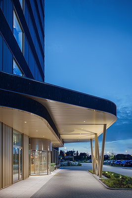 , bestaat uit een acht verdiepingen hoge toren en een tweelaagse plint. De hotelkamers bevinden zich alle in de toren, de plint biedt plek aan onder meer de entree, het restaurant en congres- en vergaderruimtes.