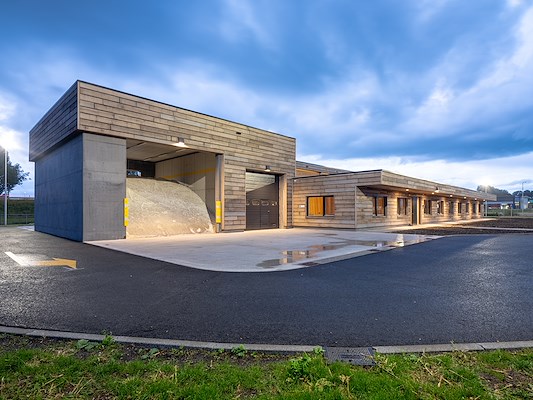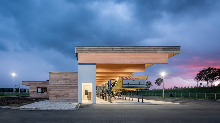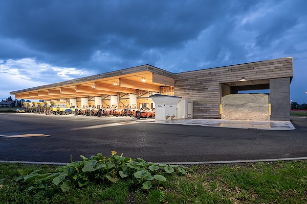 Het nieuwe wegensteunpunt vervangt een verzameling van gebouwen die in 2009 nog werden vernieuwd en uitgebreid door Vissers & Roelands Architecten. In de eerdere opzet lagen de gebouwen rond een centraal erf, waardoor verkeersstromen elkaar kruisten. In de nieuwe opzet is dit omgedraaid en zijn alle functies gebundeld in een centraal op het terrein gelegen gebouw, waardoor de verkeersstromen daaromheen de ruimte hebben. Vooral op piekmomenten maakt dat een groot verschil.