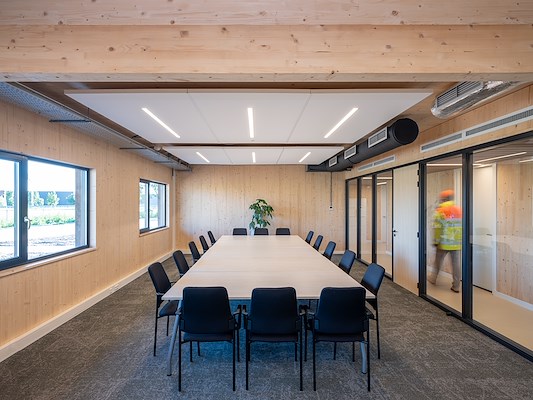 Een deel van het dak is voorzien van sedum. Daar bovenop liggen PV-panelen. Die combinatie werkt goed: op warme dagen werkt het sedum verkoelend voor de zonnepanelen waardoor die dan beter presteren. Het kantoor heeft aan de zuidzijde een groot overstek om daar te grote opwarming van het gebouw te voorkomen.