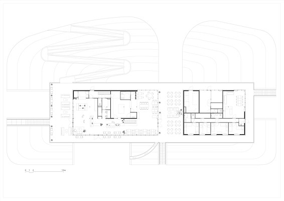 Door het flexibele ontwerp kunnen de ruimtes zelfs gedurende de dag worden aangepast en getransformeerd naar gelang de wensen veranderen. Het compacte karakter van het gebouw draagt verder bij aan de overzichtelijkheid en een heldere routing. Ook de glazen gevels, die grotendeels volledig geopend kunnen worden, dragen bij aan de helderheid en transparantie. Bezoekers kunnen zo genieten van een panoramisch uitzicht.