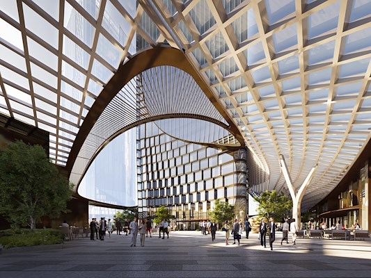 “Naast het creëren van een groot architectonisch gebaar is het essentieel om een gebouw te ontwerpen dat voor iedereen toegankelijk is”, stelt Hannes Pfau, architect en partner bij UNStudio. “Onze strategie hier was om ons te concentreren op de menselijke schaal, vooral in de lagere volumes. We werkten met een concept waarbij de plint en de pleinen fungeren als ‘urban living room’. Dit maakt een mensgerichte gemeenschap mogelijk die de openbare ruimtes vormgeeft en verbindingen met de stad smeedt; plaatsen waar mensen gemakkelijk toegang toe hebben en waar ze met elkaar in contact komen.”