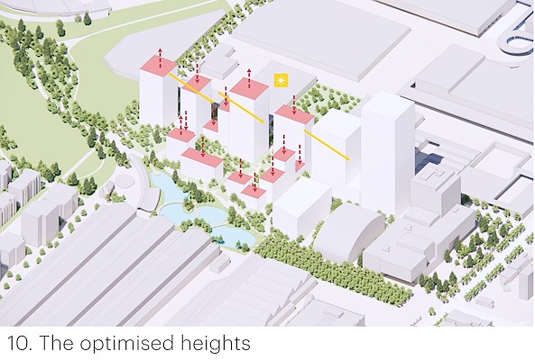MVRDV heeft een aantal ruimtelijke en kwaliteitsregels opgesteld voor zaken als de gebouwomvang, samenstelling van de gevel en het materiaalgebruik (voornamelijk baksteen). Aan de hand van dit ‘playbook’ ontwerpen alle bureaus gebouwen die moeten passen binnen het geheel, maar zich op subtiele wijze ook weer onderscheiden.
