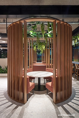 Op de begane grond bevindt zich het bedrijfsrestaurant voor 175 personen, dat fungeert als centrale ontmoetingsplek binnen het gebouw en de verschillende vestigingen. Het restaurant beschikt over een professionele keuken waar mensen met een afstand tot de arbeidsmarkt een werkplek vinden. Aan beide zijden van het restaurant zijn terrassen aangelegd die integraal deel uitmaken van de eetgelegenheid.