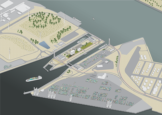 Ter vervanging van het verouderde en te kleine havencoördinatiecentrum wordt op het plateau tussen de sluizen nu een nieuw en groter centrum gerealiseerd. In het gebouw worden alle relevante autoriteiten, stakeholders en dienstverleners in de haven samengebracht. Vanuit het gebouw worden alle havenactiviteiten en alle scheepvaartbewegingen gecoördineerd. Ook krijgt een nieuw trainingscentrum en interactief bezoekerscentrum hier een plek. Een nautische ketenintegratie, noemt KAAN Architecten het.
