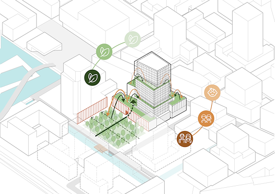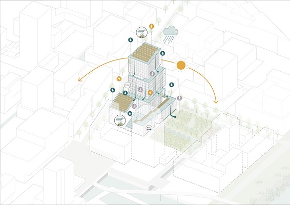 Het team van Duitse en Nederlandse architecten en adviseurs noemen het project een sociaal en duurzaam ecosysteem: “De geleidelijke overgang tussen de eigen balkons, de collectieve buitenruimtes en het plantsoen naast het gebouw zorgt voor een sociale hechting van de belangrijkste doelgroep van de appartementen: gezinnen. Andersom bieden de balkons ruimte voor veel beplanting, waardoor planten en dieren vanuit de omgeving hun weg omhoog vinden, de toren in.”