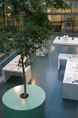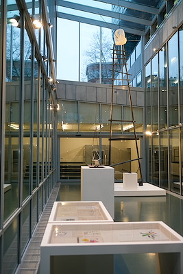 In het atrium verrijst een speciaal voor de tentoonstelling geproduceerde variant van de sculptuur