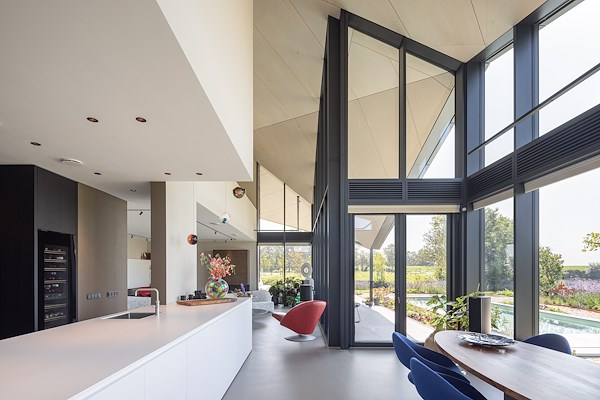 Vlakbij het Hollands Diep, op een oorspronkelijk strategische locatie met een historisch fort in de nabijheid, ligt een opvallende villa.