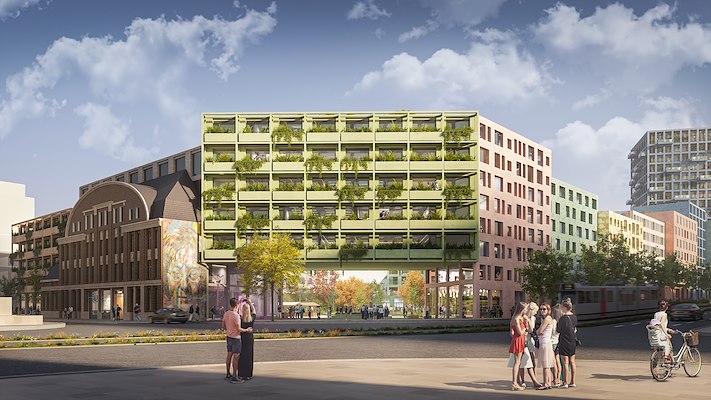 Het programma behelst onder meer vijfhonderd betaalbare woningen, waarvan de helft sociale woningbouw. Ook komen er gemeenschappelijke ruimtes en voorzieningen, zoals speelplekken en sportvoorzieningen. Om het grote binnenterrein economisch mogelijk te maken, komt op de hoek een zeventien verdiepingen tellend kantoorvolume, waarvan het bovenste blok is gedraaid.