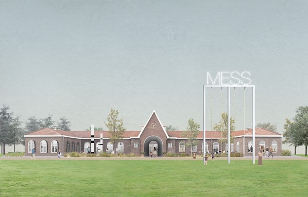 het ontwerp voor de transformatie van de officiersmess van het voormalige militaire complex Kranenburg. Broedplaats MESS krijgt een vernieuwd, verduurzaamd en uitgebreid gebouw, waarbij het architectenbureau de huidige en historische kenmerken van het pand versterkt.