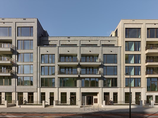 ontworpen complex bestaat uit 54 luxe woningen in verschillende typologieën, bovenop een gemeenschappelijke parkeergarage. Het complex in de nieuwe woonwijk rond de voormalige Zuidergasfabriek is geleed in vier afleesbare ‘herenhuizen’. Het gebouw heeft een bijzonder lage EPC van -0,47.