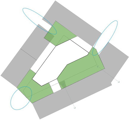 Op straatniveau wordt ruimte gemaakt voor het schoolplein, maakplein en een royaal entreegebied voor de appartementen. Op het dak van de school komt ruimte voor een speelplein dat beschikbaar is voor zowel de basisschool als de buurt. Het multifunctionele programma van het gebouw sluit aan op het toekomstige programma van de plint van het