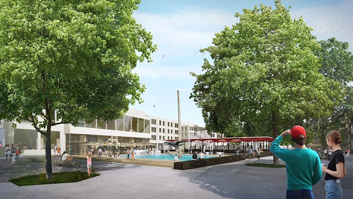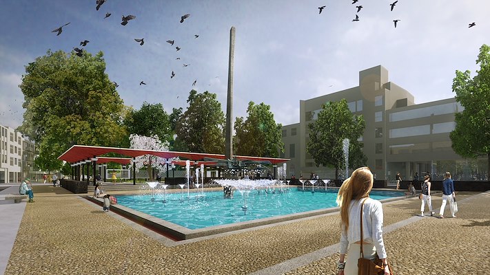 heeft het ontwerp gepresenteerd voor de vernieuwing van het typische wederopbouwplein in het centrum van de Gelderse hoofdstad. Het plein krijgt een nieuwe ondergrond, er komt meer groen en de verlichting wordt verbeterd. Hierdoor moeten ook de kenmerkende AKU-fontein, het bijbehorend bassin en de achtergelegen pergola weer prominenter in het zicht komen.