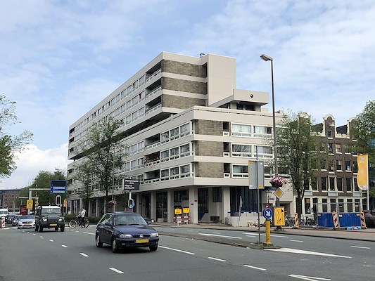 De Weesperstraat met de door Herman Hertzberger ontworpen Weesperflat