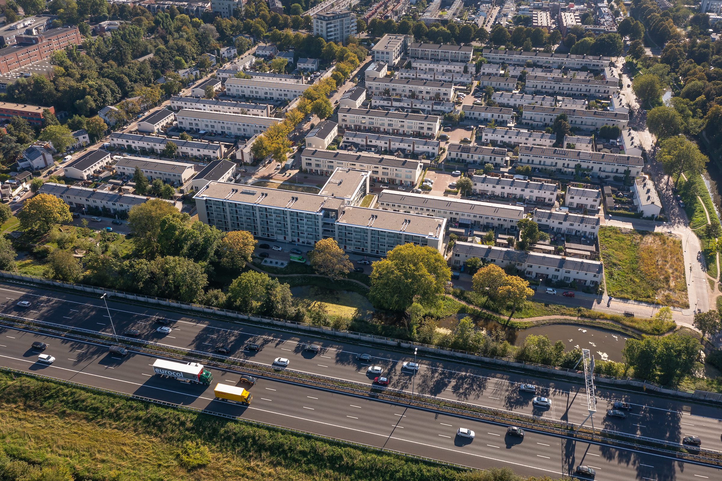 De randen van de wijk werden, als tegenwicht, tegelijkertijd verstedelijkt. “Hier hebben we met grotere appartementenblokken, twee woontorens en een supermarkt, de wijk een nieuw aangezicht gegeven”, vertelt Steenhuis Bukman. “Hierdoor is de Bomenwijk nu ook beter verankerd is in de grootschalige structuur van Delft.”