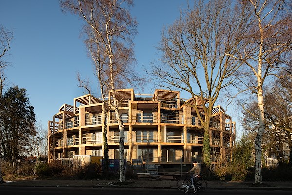 2-uitstoot te reduceren. Daarbij hoeft niet het hele gebouw in hout uitgevoerd te worden, soms is een hybride constructie efficiënter. Dan gaat het erom dat ook bij het beton een variant gekozen wordt met minder CO