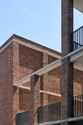 Op de onderste verdiepingen hebben de woningen hun entree aan de straatkant om het contact met de straat te vergroten. Hierdoor is het gebouw aan alle zijden stevig verankerd in de wijk, aldus De Zwarte Hond.