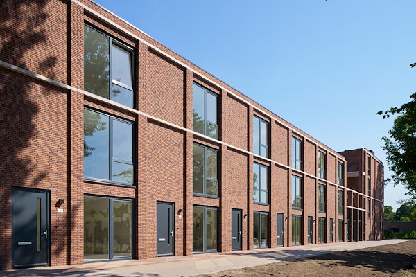 Aan de Telderswegzijde hebben de woningen een Delftse stoep met een kleine luifel. Die benadrukt niet alleen de overgang tussen privé- en openbaar gebied, maar is ook een knipoog naar de nabijgelegen winkels, leggen de architecten uit. Aan het nieuwe Adolphine Kokplein is de bebouwing iets verhoogd.