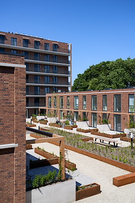 Sociale woningen rondom binnentuin in woongebouw Regulateur