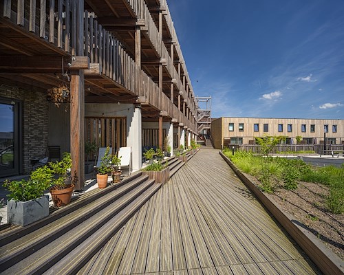 Blok B – 15 woningen van 23,5 m2 – MPG: € 0,57 MKI / m2 BVO / jaar – Materiaalgebonden CO2-uitstoot: 297 kg CO2-eq. / m2 BVO.