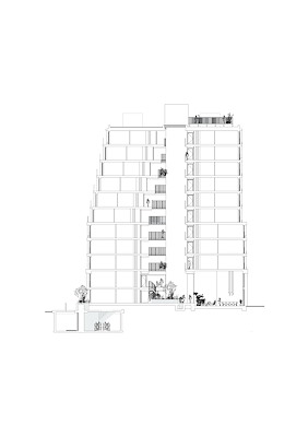 De brede galerijen die op deze plek uitkijken bieden extra ruimte voor sociale interactie. De gebouwentree is vormgegeven als een straat die dwars door het gebouw snijdt. Daardoor kun je vanaf de straat een glimp kunt opvangen van het leven binnenin.
