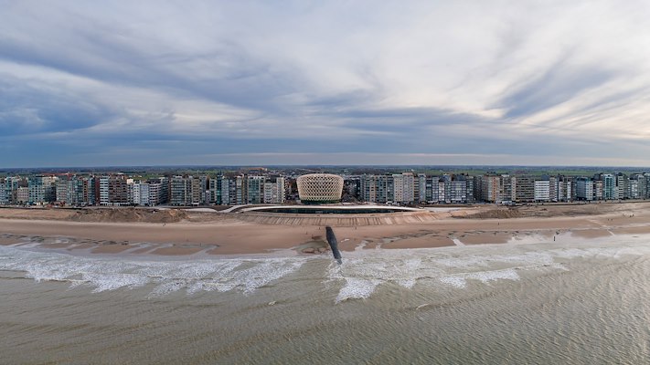 elkaar heen, maar komen ook met elkaar in aanraking. Daarmee vormt de hal het brandpunt van het complex, van Silt Middelkerke.