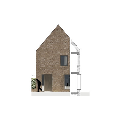 De vijf woningen vormen één architectonische familie door de baksteenmuur die om de woningen heen is getrokken. De muur heeft een robuuste verschijning aan het lint. Aan het Schanspark is de muur lager en gecombineerd met een groene erfscheiding waardoor, gecombineerd met de houten binnenwereld van het ensemble, een zachte overgang naar het park ontstaat, legt heren 5 uit.