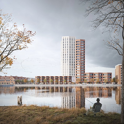 Dit jaar wordt gestart met de bouw van de tweede fase van woningbouwproject Schoterkwartier in Haarlem. Op een braakliggend terrein langs het Spaarne verrijst een blok met onder meer een dubbele woontoren van 58 meter hoog, naar ontwerp van