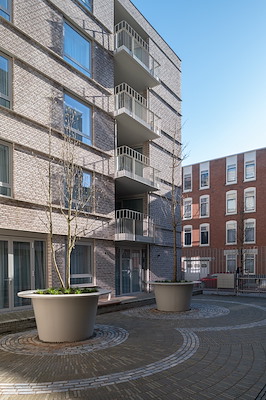 is er een gebouw met vier luxe appartementen neergezet. Aan de achterkant van dit pand, waar voorheen een parkeerplaats lag, heeft het bureau nog eens een blok met 24 appartementen gerealiseerd.