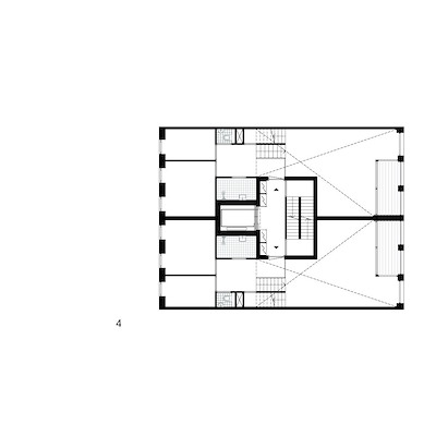 Er zijn vier appartementen met een hoog deel aan de voorzijde en twee lage delen aan de achterzijde (op de eerste plus tweede en op de vierde plus vijfde verdieping) Er zijn twee appartementen met een hoge woonkamer en een lag deel aan de achterzijde (op de derde verdieping).