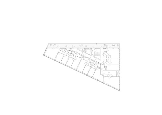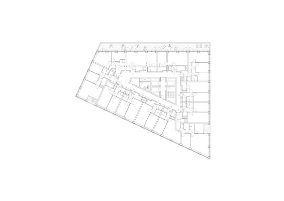 De ‘suncuts’ heeft Studioninedots vertaald in een extra kwaliteit: een terrassenstructuur van buitenruimten op de bovenste verdiepingen, die voor alle bewoners toegankelijk zijn. De vertrapping zorgt bovendien dat de bewoners van alle lagen hier steeds met elkaar in contact komen. De gewenste ‘bites’ heeft Studioninedots ingezet om de entrees tot de publieke plint te accentueren, maar tegelijkertijd ook om meer publieke ruimte rond het gebouw te behouden.