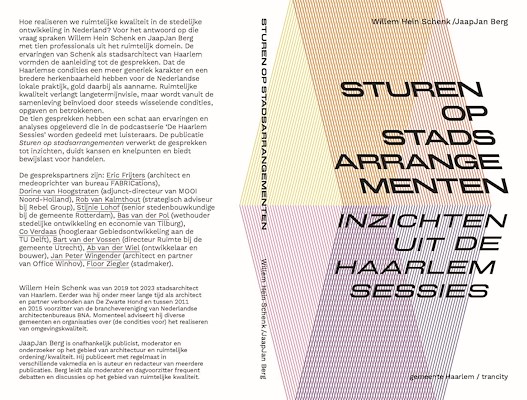 In De Haarlem Sessies bespreken Schenk en Berg met verschillende experts op het gebied van onder meer ruimtelijke ordening en overheid over hoe we ruimtelijke kwaliteit kunnen realiseren bij stedelijke ontwikkeling. In de publicatie Sturen op