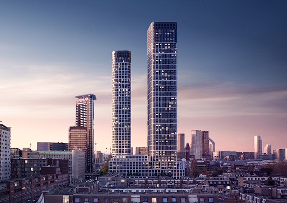 Het uit 2022 stammend ontwerp met torens van 180 en 153 meter hoog