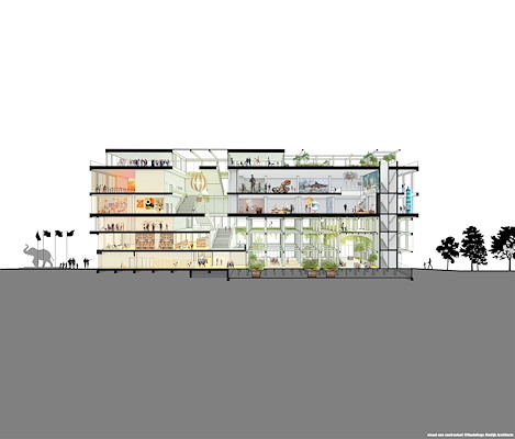 nog niet over het ontwerp vertellen. Het moet een duurzaam en flexibel gebouw worden, met ruimtes die aangepast kunnen worden voor allerlei soorten tentoonstellingen, evenementen en bijeenkomsten.
