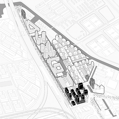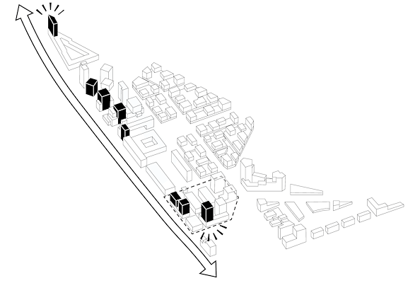 De plint van de toekomstige bouwvelden is twaalf of achttien meter hoog, hetgeen moet zorgen voor een leefbare straat op ooghoogte, aldus het architectenbureau te creëren. In de plint is ruimte voor een mix van bedrijven, maatschappelijke functies, kantoren en stadswoningen. Op de plint bevinden zich hoogte-accenten, geplaatst op stedenbouwkundig strategische plekken, met ruimte voor appartementen.
